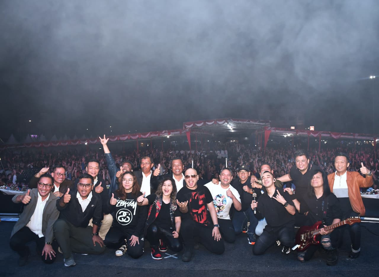 Mereka tampil di atas panggung menyapa masyarakat dalam suasana penuh keakraban dan kekeluargaan bersama artis papan atas TRIAD yang mengguncang suasana.
