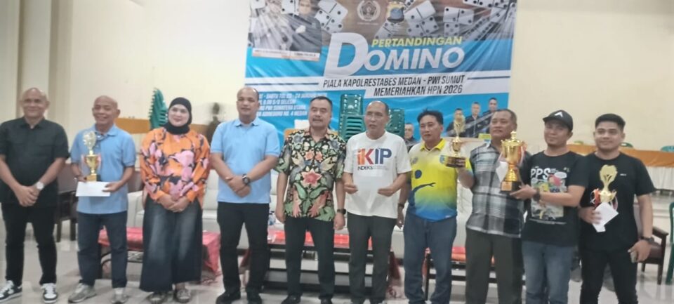 Pertandingan domino PWI Sumut Piala Kapolrestabes Medan berakhir sukses, ditutup secara resmi oleh Kasat intelkam Polrestabes Medan AKBP Lengkap Suherman Siregar mewakili Kapolrestabes Medan Kombes Pol Dr Jean Calvijn Simanjuntak, Sabtu (24/01/2026) di Gedung PWI Sumut Jalan Adinegoro Medan.