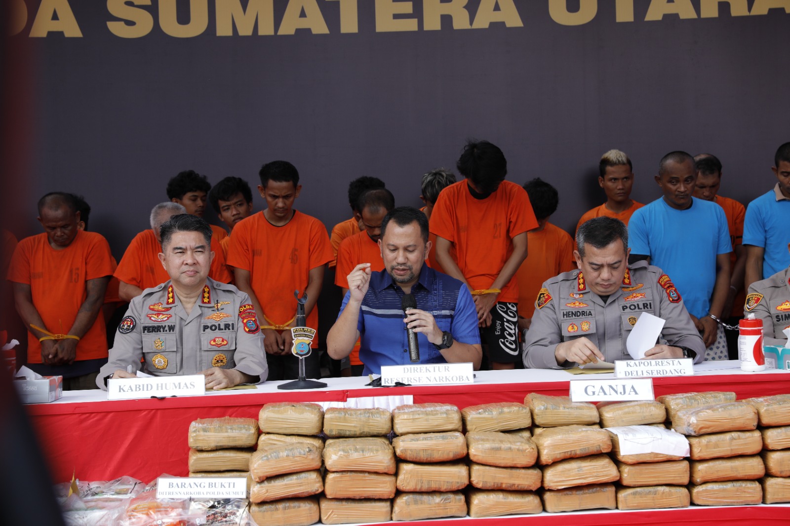 Ditambahkan Calvijn, berdasarkan hasil dari kerjasama Direktorat Reserse Narkoba Polda Sumut bersama Polres Deli Serdang, Tebing Tinggi dan Polres Serdang Bedagai, mengungkap sebanyak 862 kasus, dengan 1.010 tersangka.