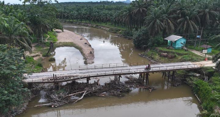 Selain itu, insiden truk pengangkut tandan buah segar (TBS) yang terbalik akibat permukaan jembatan yang miring pada Agustus 2025 menjadi peringatan keras,terangnya.
