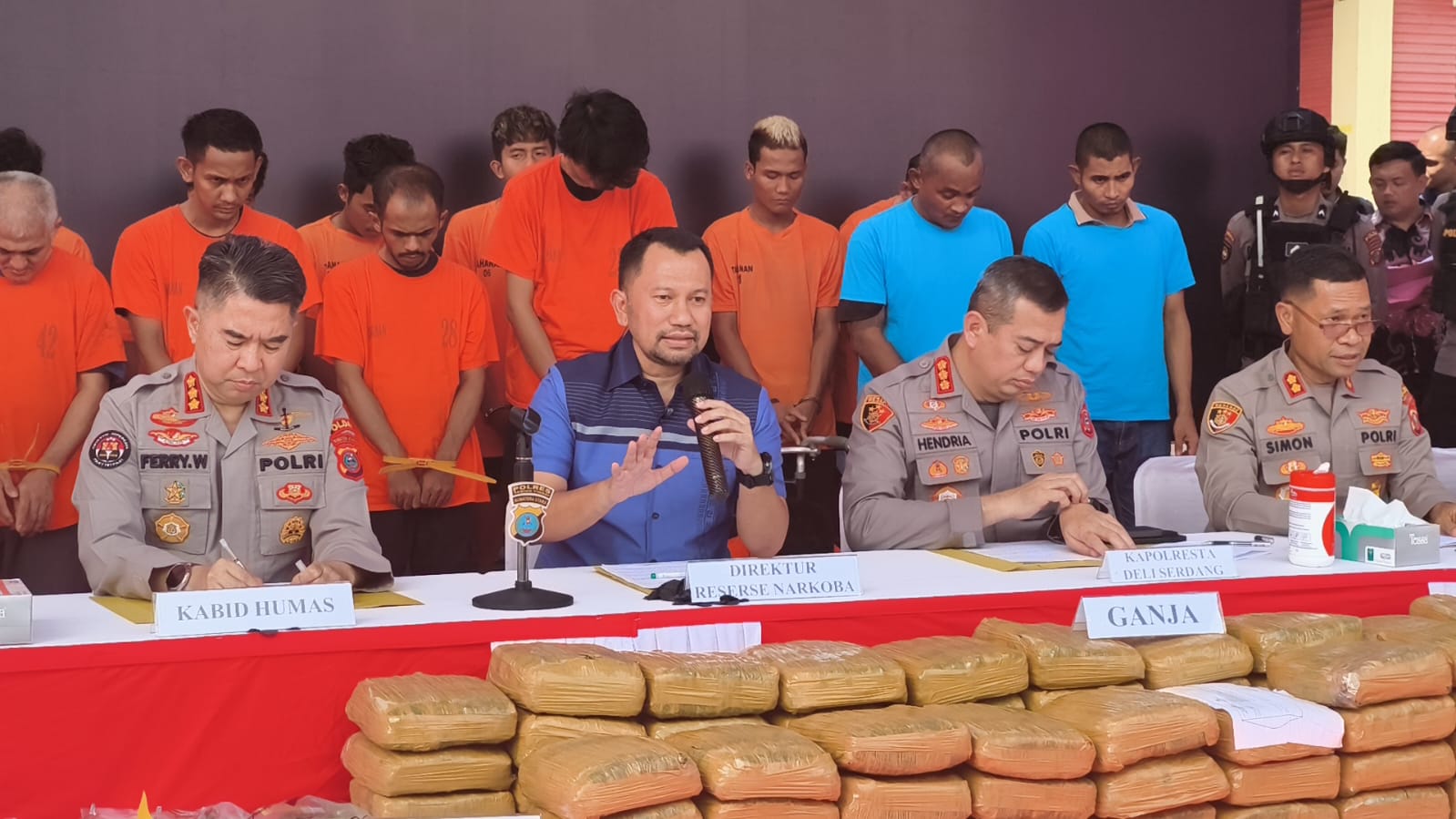 Paparan ini bersama Dirresnarkoba Polda Sumut Kombes Pol Jean Calvijn Simanjuntak, diikuti Kapolresta Deliserdang Kombes Pol Hendria Lesmana, Kapolres Serdangbedagai AKBP Jhon Sitepu, serta Kapolres Tebingtinggi AKBP Simon Paulus Sinulingga.